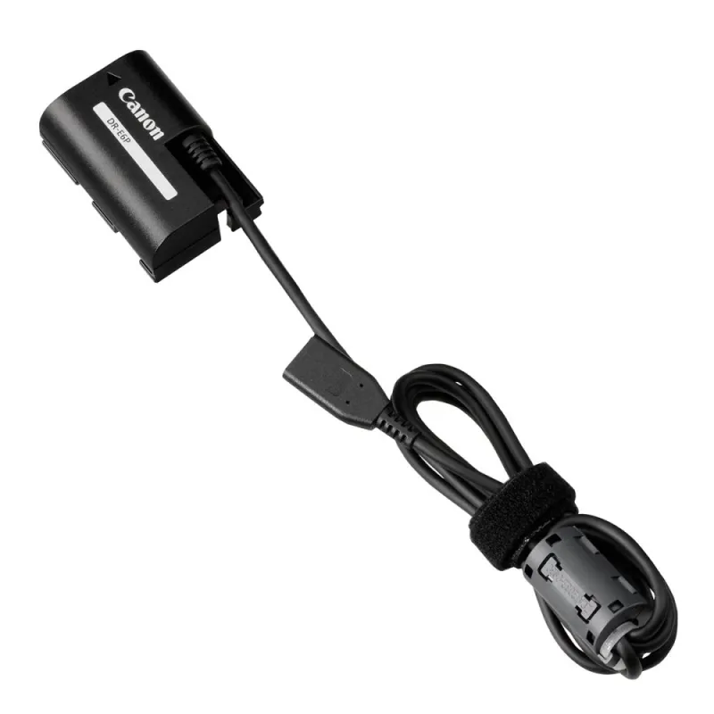Successor to the DR-E6, the DR-E6P is a DC coupler compatible with all cameras powered by the LP-E6 series batteries. It is the first DC coupler compatible with a USB-C connection and comes with a rated output of 10.0V DC and an allowable current of 6A. The DR-E6P ensures an optimal power supply for the camera and load conditions used.