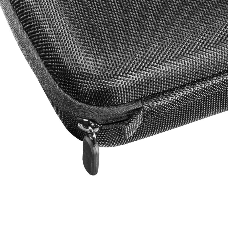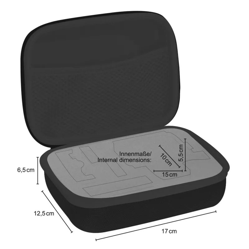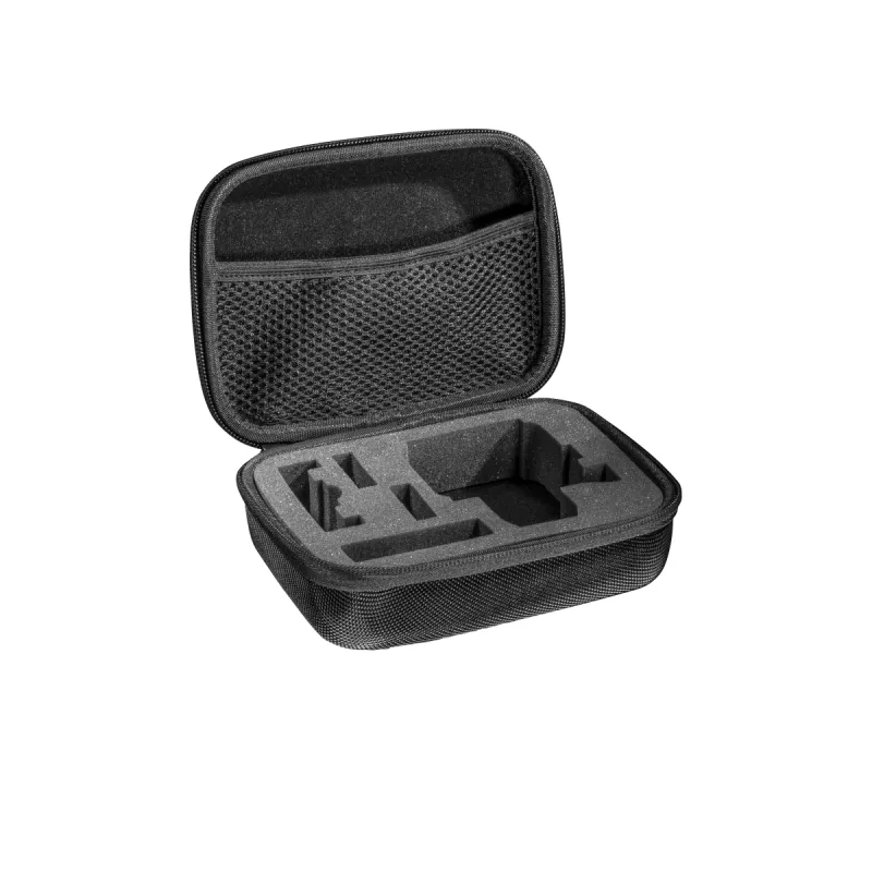 Special featuresThe robust and compact EVA hard-case with a washable nylon mesh outer shell and pre-punched foam inlay offer maximum protection. Slight shocks are cushioned and the individual pieces of GoPro equipment are securely and gently held in place with padding. The foam inlay can be adjusted for different kinds of equipment.