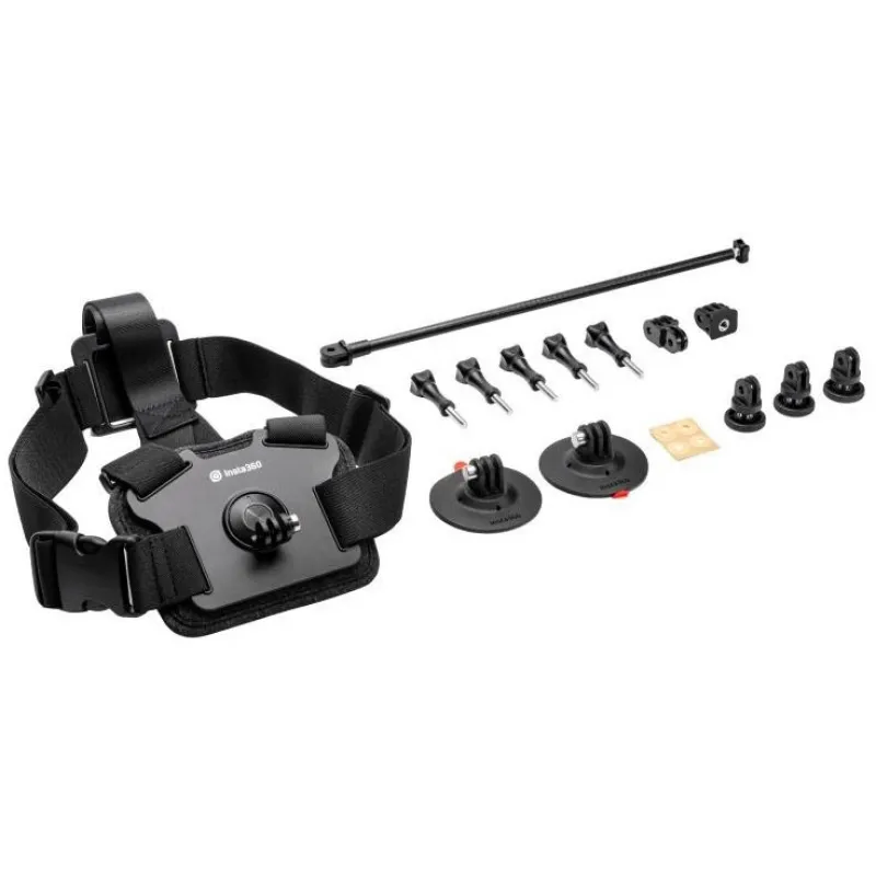 Includes Chest Strap, Helmet Extension Rod, Flexible Adhesive Mounts, and Mounting Parts.