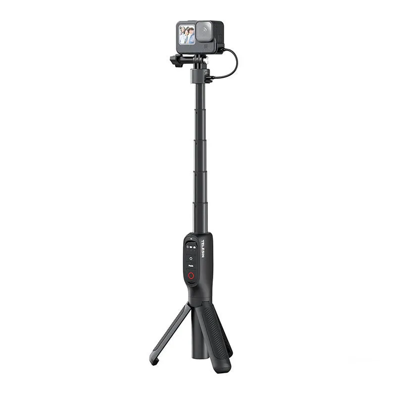 This innovative tripod is designed for GoPro Hero 12, 11, 10, 9, and MAX cameras, combining a selfie stick and tripod. It features a built-in remote control for easy video recording and photo taking. The 5,000 mAh battery allows up to 6 hours of recording at 4K30fps, ensuring you can shoot without battery concerns.