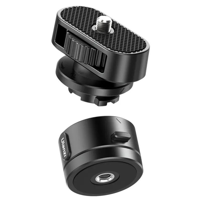 The Ulanzi Go Quick II Magnetic Quick Release 1/4 Screw Adapter Mount Set offers quick and easy one-click installation. Rotate 90 degrees clockwise to automatically and securely lock in place. With a 1/4 standard screw interface, it is compatible with a variety of devices, making it ideal for various shooting needs.