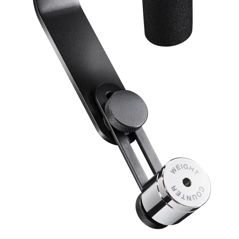 The steadycam stabilizes the camera and enables calm filming. This is ensured by the 30g and 100g counterweights, which are part of the delivery, which enable exact alignment of the camera. The pod is equipped with a bubble level for balance control. The camera is simply mounted to the camera mount by using a 1/4 inch thread. While you hold the pod with one hand, you keep you other hand free for the camera. The foam plastic encasure of the handle provides additional comfort when filming.