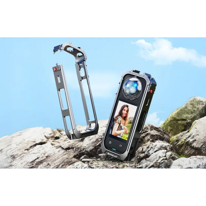The PULUZ metal protective case is designed for Insta360 X5 camera owners who expect not only excellent protection and elegant design, but also professional functionality. The magnetic base provides a stable connection to the selfie stick, eliminating vibrations and improving the quality of shots. The sandblasted surface with a matte finish not only looks aesthetically pleasing, but also prevents leaving fingerprints. The heavy-duty aluminum alloy construction protects the camera from bumps and drops, and the slim, form-fitting design with precise cutouts allows easy access to all the device's ports and buttons. Two cold shoe mounts allow accessories to be mounted without the risk of appearing 360 in the frame. The case is compatible with a wide range of grips, tripods, and mounts, making it a versatile solution for recording in any conditions.