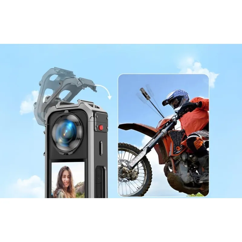 A built-in magnet on the bottom of the frame guarantees a secure connection to the selfie stick or other accessories. This ensures that the camera remains stable even during dynamic shots, resulting in clearer images without blurring.