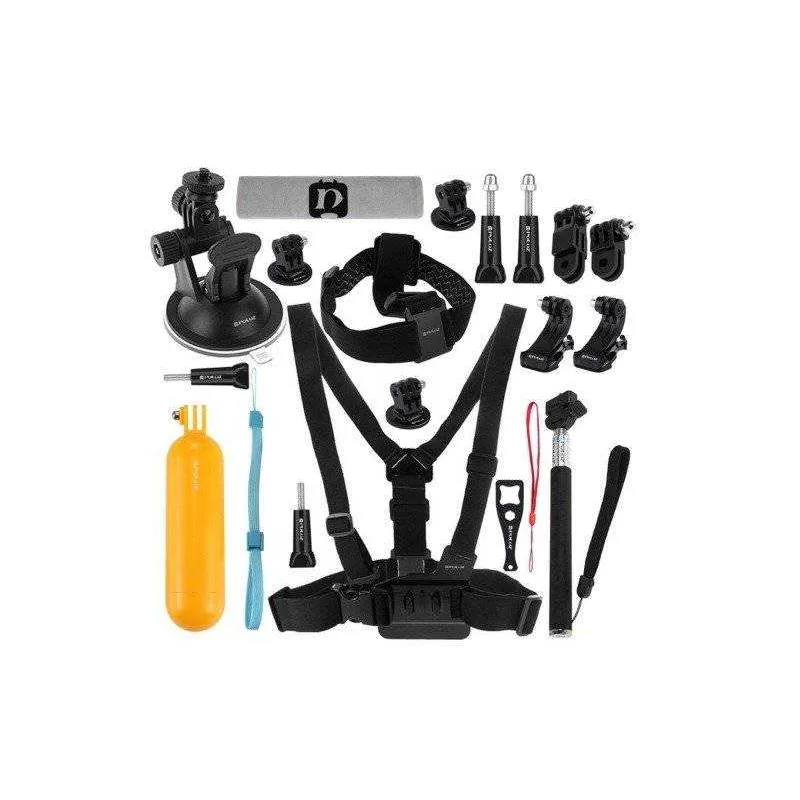 Marka Puluz to producent uniwersalnych akcesoriów do kamer sportowych. Akcesoria są kompatybilne z kamerami wyposażonymi w mocowania typu GoPro - między innymi DJI Osmo Action. Mocowania są wykonane z wysokiej jakości materiałów gwarantując stabilność oraz odporność na uszkodzenia. Zestaw zawiera zbiór niezbędnych akcesoriów, umożliwia korzystanie ze wszystkich elementów jednocześnie bez konieczności dokupowania dodatkowych mocowań. Zestaw znajdzie swoje zastosowanie w trakcie uprawiania sportów zimowych, wodnych, jazdy na rowerze oraz standardowych nagrań.
