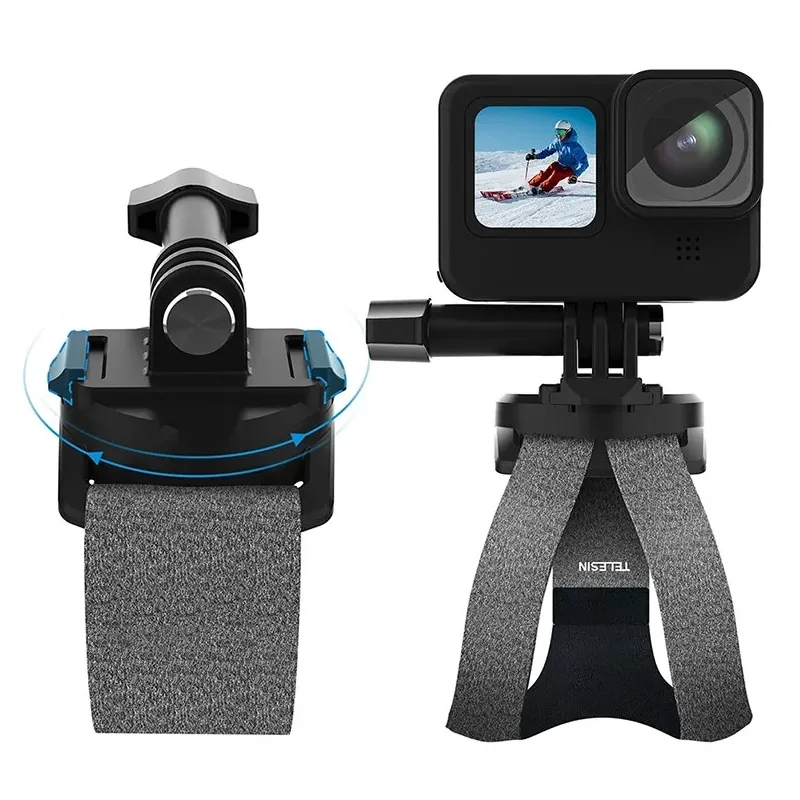 Gain a unique perspective and record dynamic footage while cycling, speed skiing, surfing or conquering your next mountain peak. The practical Telesin brand mount is compatible with many models of popular sports cameras. It rotates by 360°, which gives you a lot of interesting possibilities for recording. Thanks to the included headbands you can wear it in 2 ways.