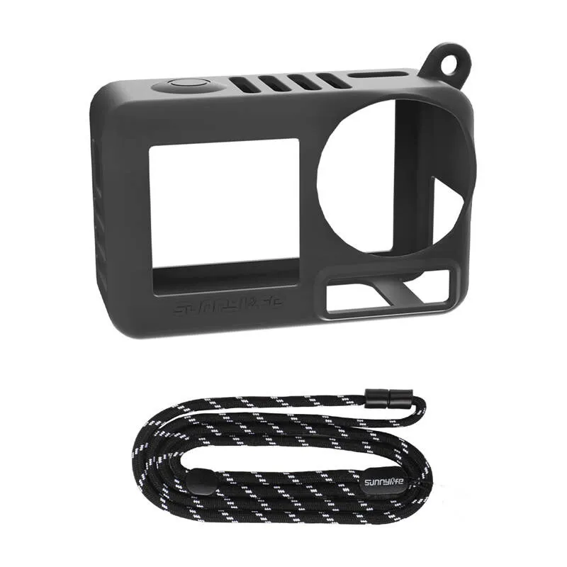 The Sunnylife OA5-BHT885-D silicone case offers stylish protection for OSMO ACTION 5 PRO cameras. It safeguards against scratches and bumps without hindering functionality, and includes a neck strap for added convenience.