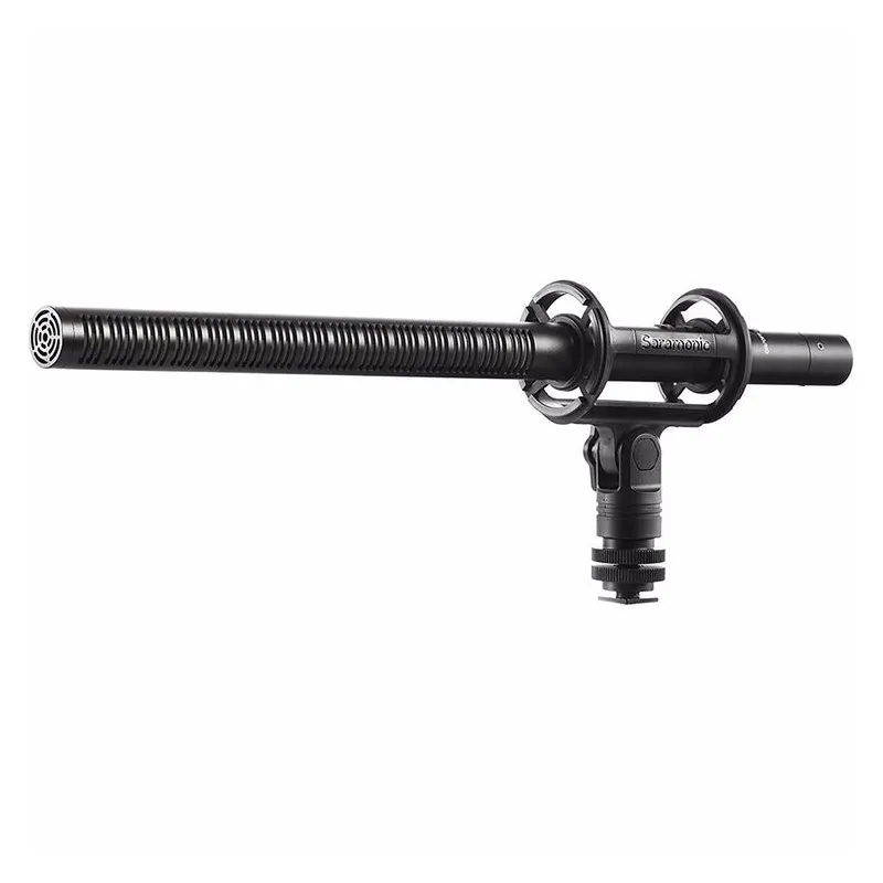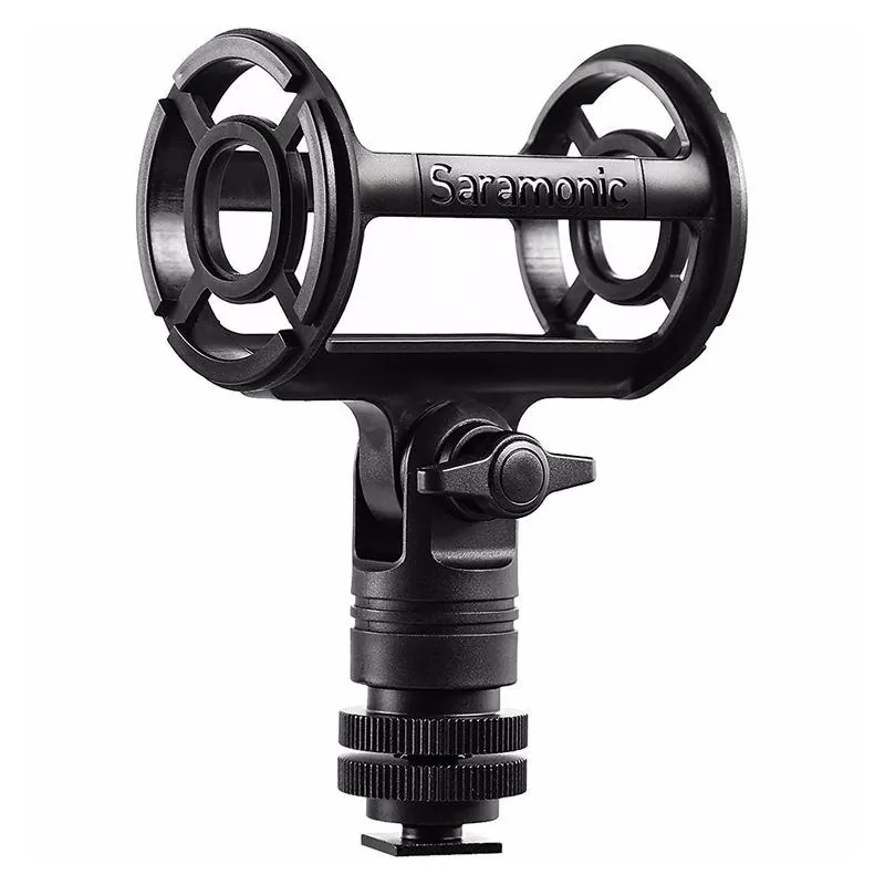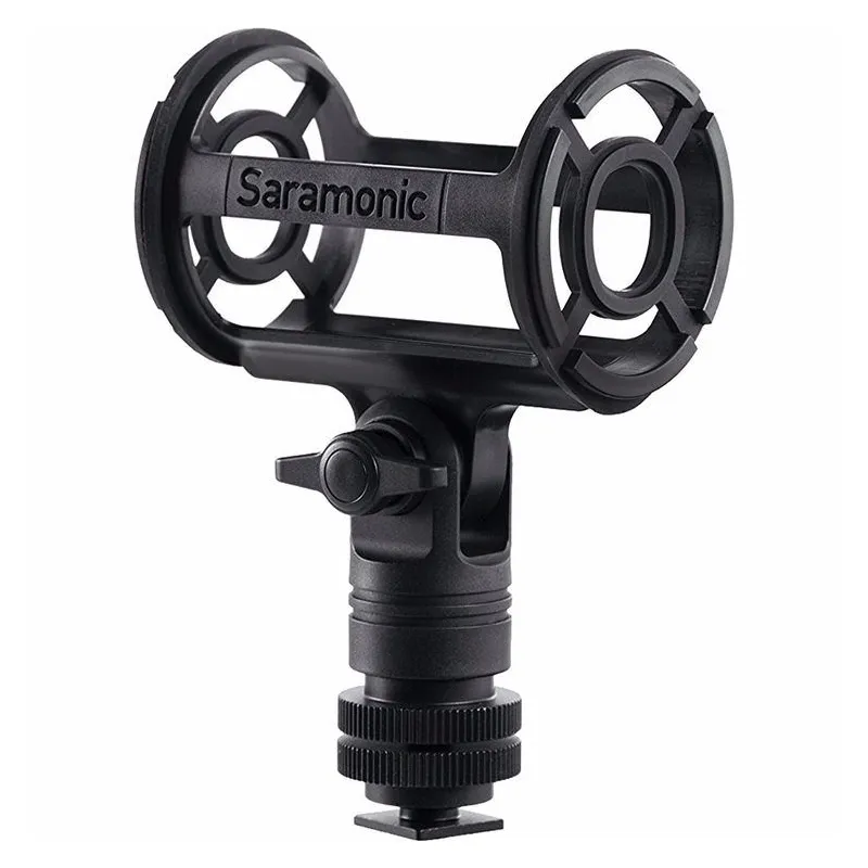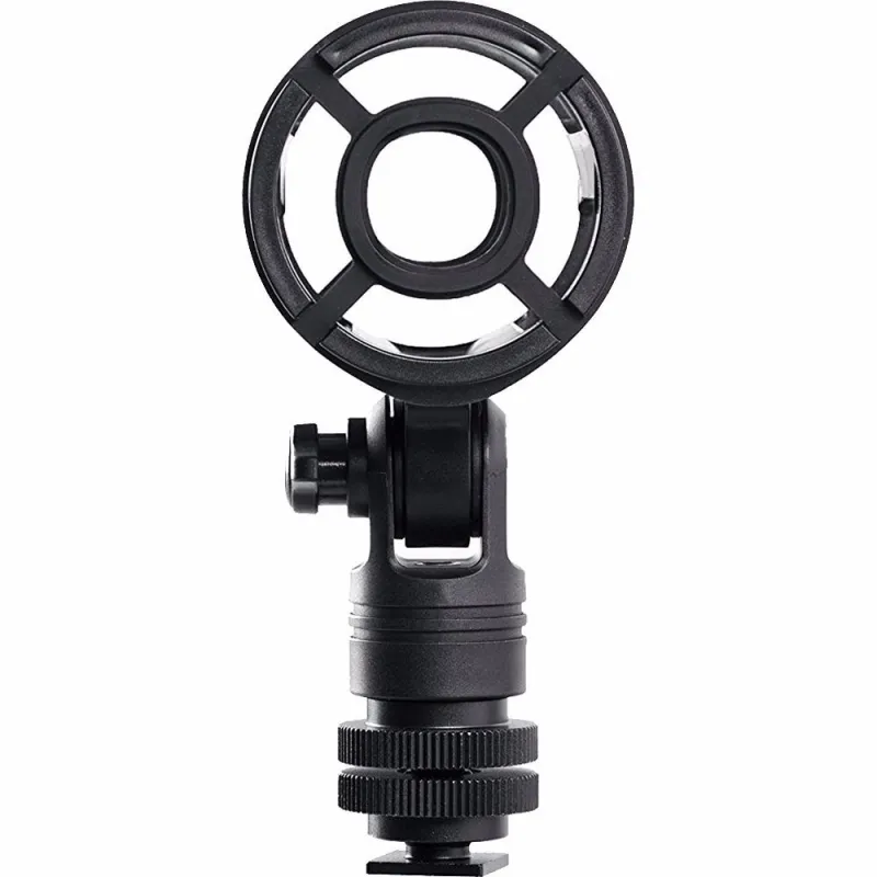 The SR-SMC2 Shotgun Microphone Shockmount with Cold Shoe Mount for Cameras from Saramonic features a four-point suspension designed to accommodate shotgun-type microphones from 19 to 25mm in diameter. It can be used to securely fasten a microphone to a boompole, camcorder, mic stand, or camera tripod for video and audio applications.