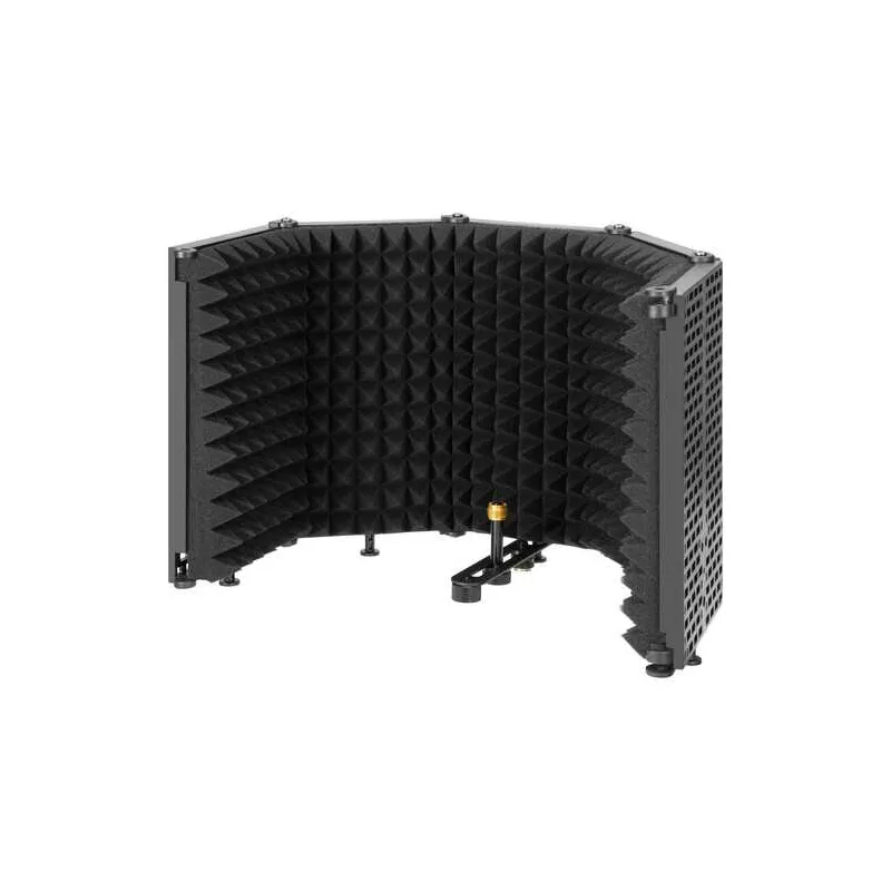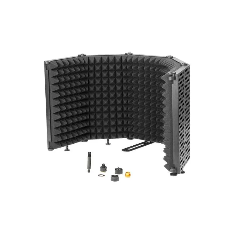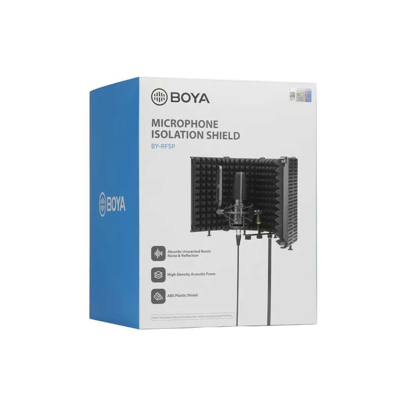 The Boya BY-RF5P is a foldable microphone isolation shield, it help to reduce the reflection and noise effectively during recording, gathering a clear high-quality sound from home recording studio, live streaming, or professional vocal recording.