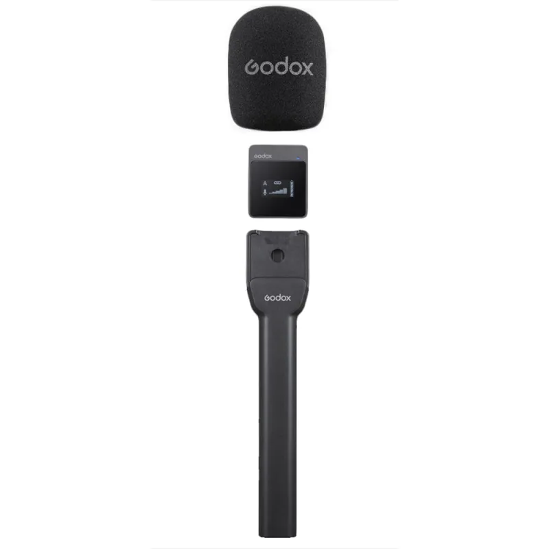 The ML-H Handheld Adapter for the Movelink system turns your Godox clip-on mic TX (M1 or M2) into a handheld reporter-style microphone.