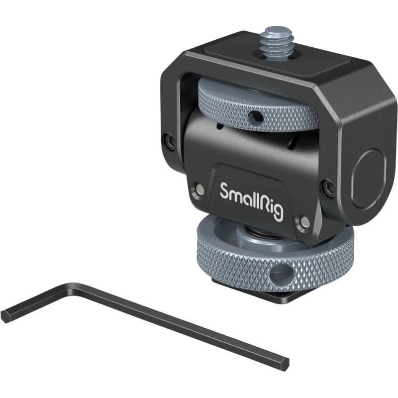 SmallRig 3809 Monitor Mount Lite with Cold Shoe SmallRig Monitor Mount Lite with Cold Shoe is designed to attach monitor. Its bottom cold shoe fits camera hot shoe or handle cold shoe; the top 1/4 20 screw supports monitor, microphone, light, etc. It can swivel 360 and tilts 180, with degree of tightness adjusted via a wrench. The 1/4 20 threaded hole at the bottom enables it to attach Magic Arm 2070, Ball Head 1135, etc.; the upper & lower thumbscrew has holes for wrench to easily disassemble. Also, its top features a protective rubber pad for more friction to prevent deflection.,
