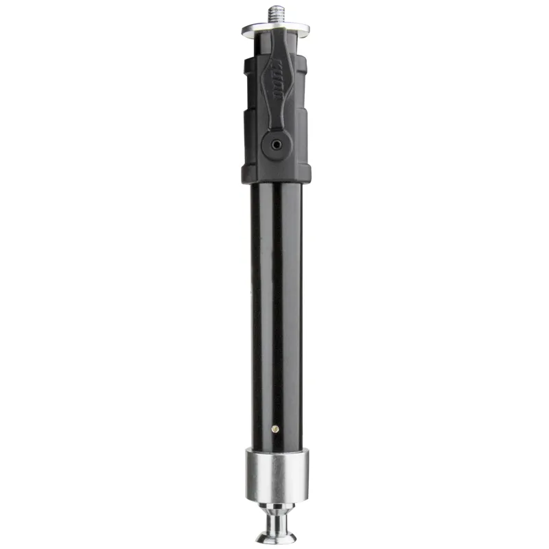Constructed from black anodized aluminum, the extension riser includes one riser and two sections which come with a 3/8-16 thread male stud on one end and a 3/8-16 thread female on the other. Additionally, it features a heavy-duty metal ball head with a 3/8-16 thread male stud and a 3/8-16 thread female in the base. This product is designed primarily to precisely position the camera in almost any desired position, thanks to the height-adjustable column and the ball joint adapter, which is ideal for car mount shooting. The height can also be extended from 27cm (10.7) to 43cm (17) and can be locked with the die-casting aluminum wing locking knob.