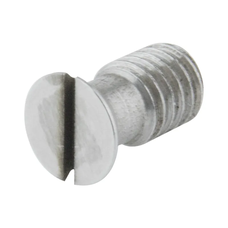 Stainless steel slotted countersunk head 3/8-16 screw with a 15mm shaft in length.