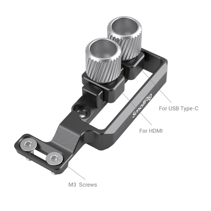 2981 is compatible with SmallRig Cage 2982. Designed to prevent the cameras HDMI and USB Type-C cables from accidentally disconnecting, this clamp attaches to the side of the cage using two M3 Screws and fixes the cables using two knurled 1/4-20 screws. Each screw adjusts a sliding block that can be tightened to accommodate varying diameters. This Cable Clamp is constructed of a sturdy aluminum alloy and comes with an Allen wrench.