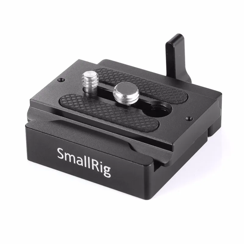 SmallRig Quick Release Clamp and Plate ( Arca-type Compatible) 2280 is a dedicated kit designed for mirrorless and DSLR cameras. Attach the QR plate to SmallRig cage or camera tripod socket, drop it into the clamp and tighten the knob screw. There are multiple 1/4’’-20, 3/8’’-16 threaded holes and thorough holes on the bottom of the base plate so it can be attached to the tripods or other platforms.
