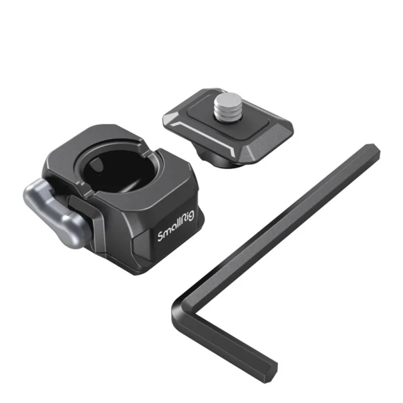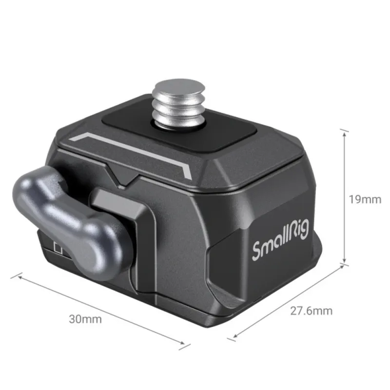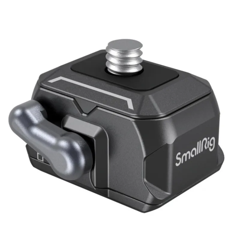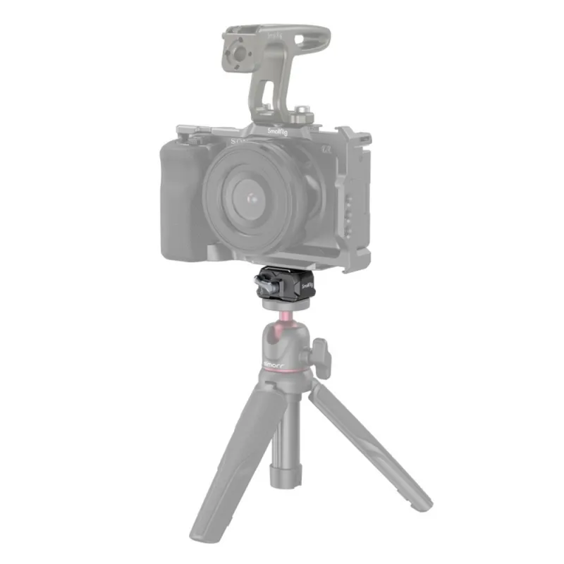 SmallRig Universal mini Quick Release Plate and Clamp 3513B comprises a quick release plate and a baseplate. The quick release plate supports devices with 1/4"-20 threads, such as cameras, monitors, cages, mounting plates, etc.; And the quick release plate is reserved for 2 optional dowel pins, which can be removed and installed as needed to effectively prevent the devices from deflection. Its 1/4"-20 threaded holes on the bottom allow attaching devices with 1/4"-20 screws, like tabletop tripods, ball heads, etc.