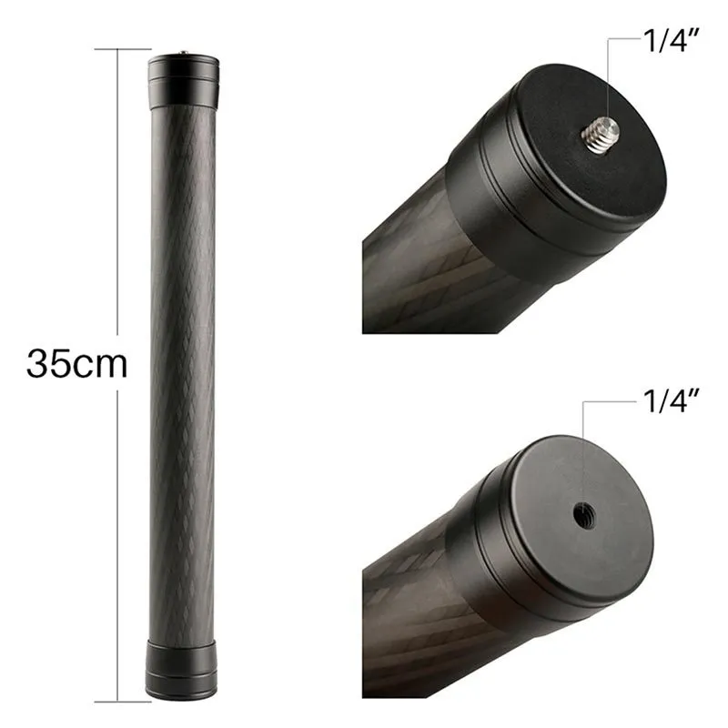 This Caruba stick is sturdy and lightweight thanks to the use of carbon fiber and aluminum alloy. The durable material is pleasant to hold and weighs only 120 grams. The stick extends your gimbal by 35.5cm.
