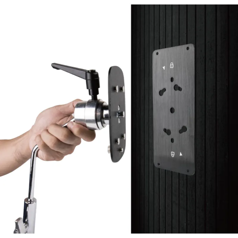 The removable twist-on center mounting plate provides an ideal mounting solution for all lighting fixtures, particularly Kino Flo. It features a rigid steel ball head and a ratcheting handle that allows for all-axis locking with a single locking handle. The located pin and clear laser marking make it effortless to twist on or remove the mounting plate from the lighting fixture.