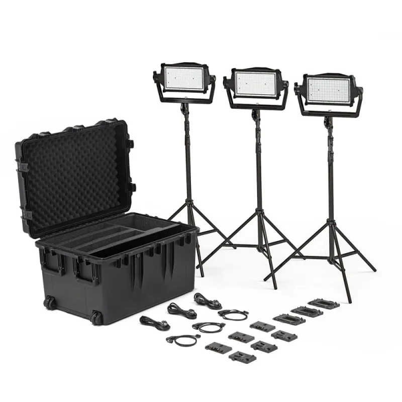 This 3-light kit provides the essentials for location shoots in a rugged, waterproof Pelican case that’s ready for the road. It includes three Astra IP Half fixtures, each with a light stand and battery brackets for Gold Mount and V-Mount batteries.