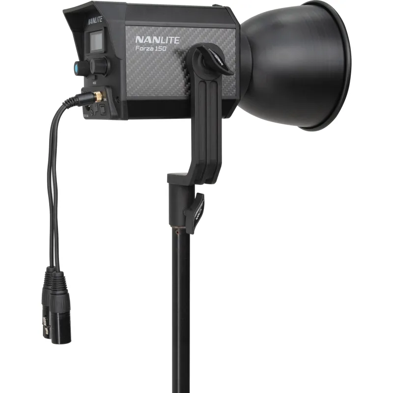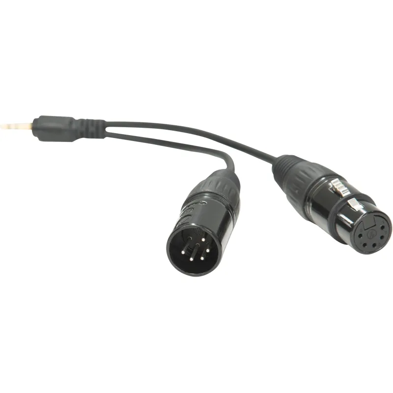 The Nanlite CB-DMX-3.5C-1/2 is a short DMX adapter cable that was made for use with compatible Forza models. It features a male 3.5mm plug that connects to the DMX port on the back of the Forza and it terminates in 2 standard 5-pin XLR connectors, which are male and female for input and output. This adapter cable allows you to control multiple fixtures that are connected in a series.