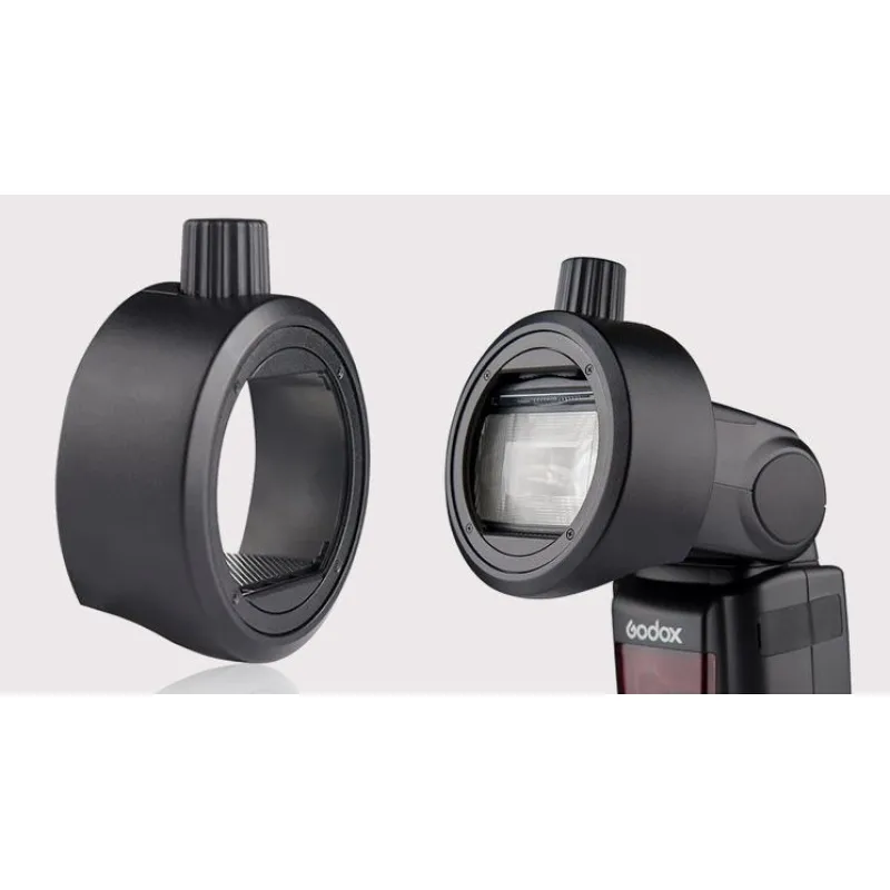 Godox Round Head Accessory Adapter S R1 The Godox Round Head Accessory Adapter S R1 is easy to attach thanks to the adjusting screw. The adapter is a basic component of a magnetic system that can be mounted quickly and easily on most rectangular flash units from Godox, Canon, Nikon and Sony, among others. The modifier adapter is firmly attached to your flash thanks to the textured rubber pads on the top and bottom.
