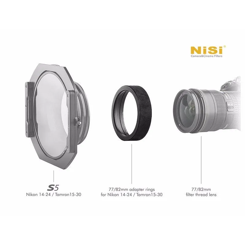 With these adapters, you can use your NiSi S5 holder even with lenses that have 77 mm and 82 mm filter diameters.