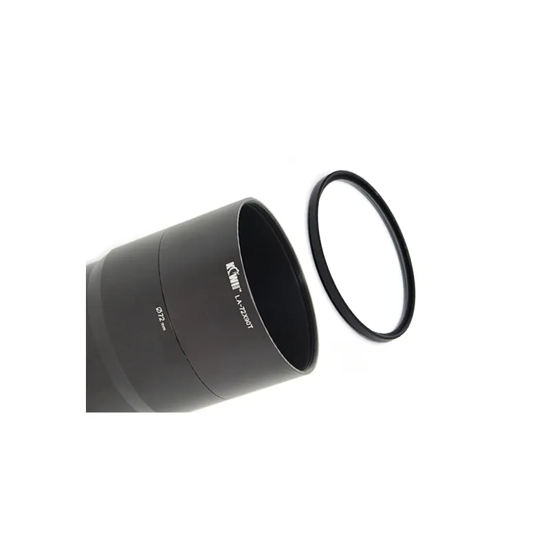 The Kiwi lens adapters are made of black anodized aluminum. With the lens adapter, you can attach a 72mm filter to your camera, such as a UV or CPL filter. The adapter can also be used to attach other lenses or accessories.
