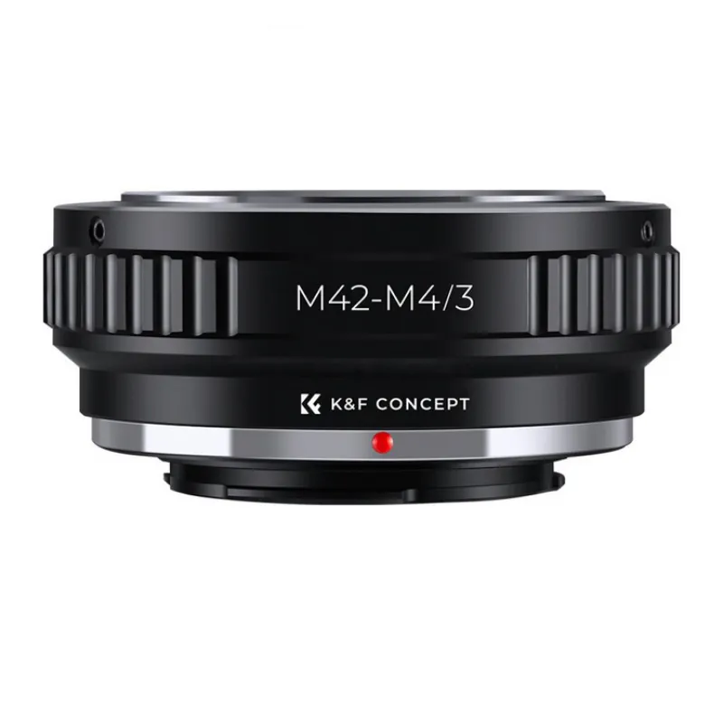 The K&F M42 Lenses to M43 MFT Mount Camera Adapter allows M42 mount lenses to be used on Micro 4/3 (MFT) mount camera bodies. This adapter is compatible with a wide range of Micro Four Thirds cameras from Panasonic, Olympus, JVC, DJI, Kodak, and Blackmagic. Made of durable brass and aluminum, it ensures stable and precise manual operation with support for infinity focus. For heavy medium format lenses, it is recommended to use a telephoto bracket and tripod for balanced shooting.