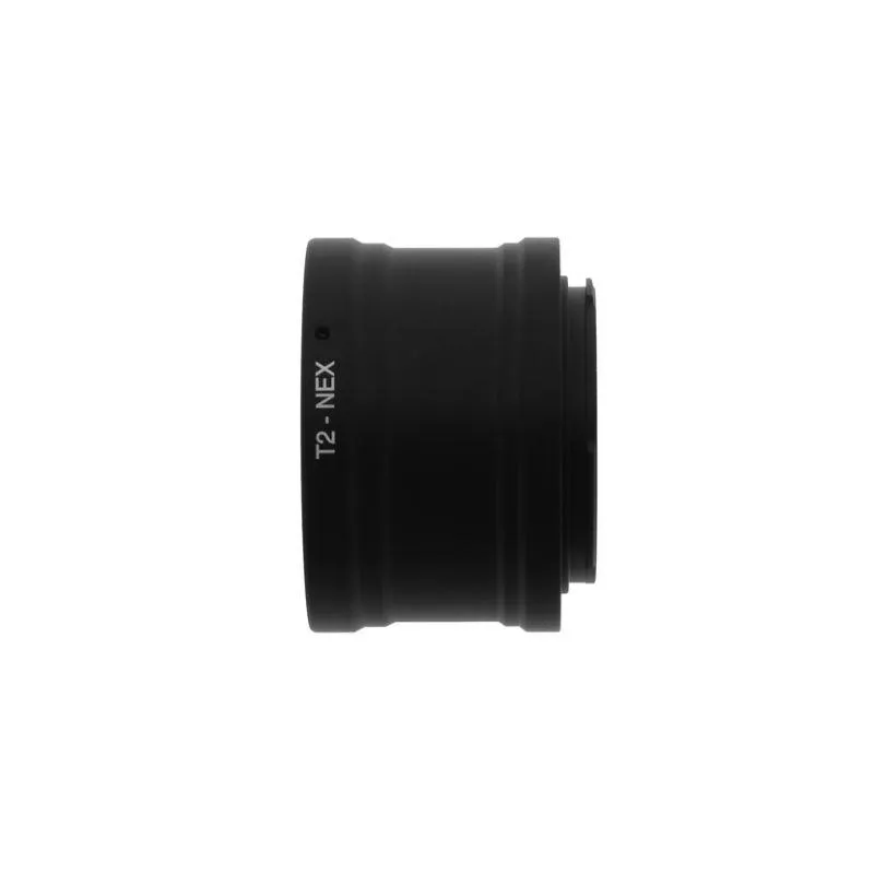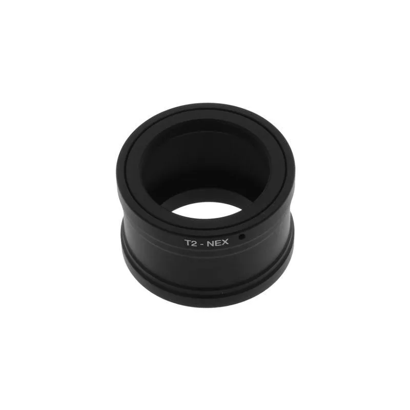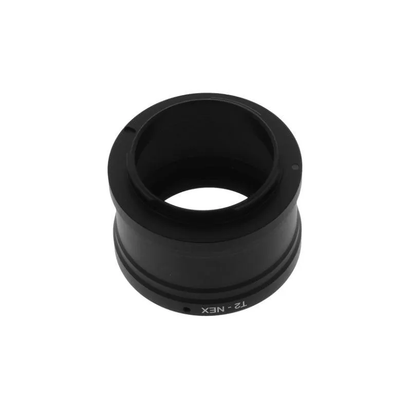 A T2 adapter ring is used to connect your reflex camera to the camera adapter of for instance telescopes, microscopes, binoculairs and spotting scopes. On your telescope for instance you screw the camera adapter belonging to the telescope, and with a T2 ring you then make this camera adapter fitting for the bayonet connector on your reflex camera. You remove the objective from your camera, and click the T2 ring straight onto the camera body.