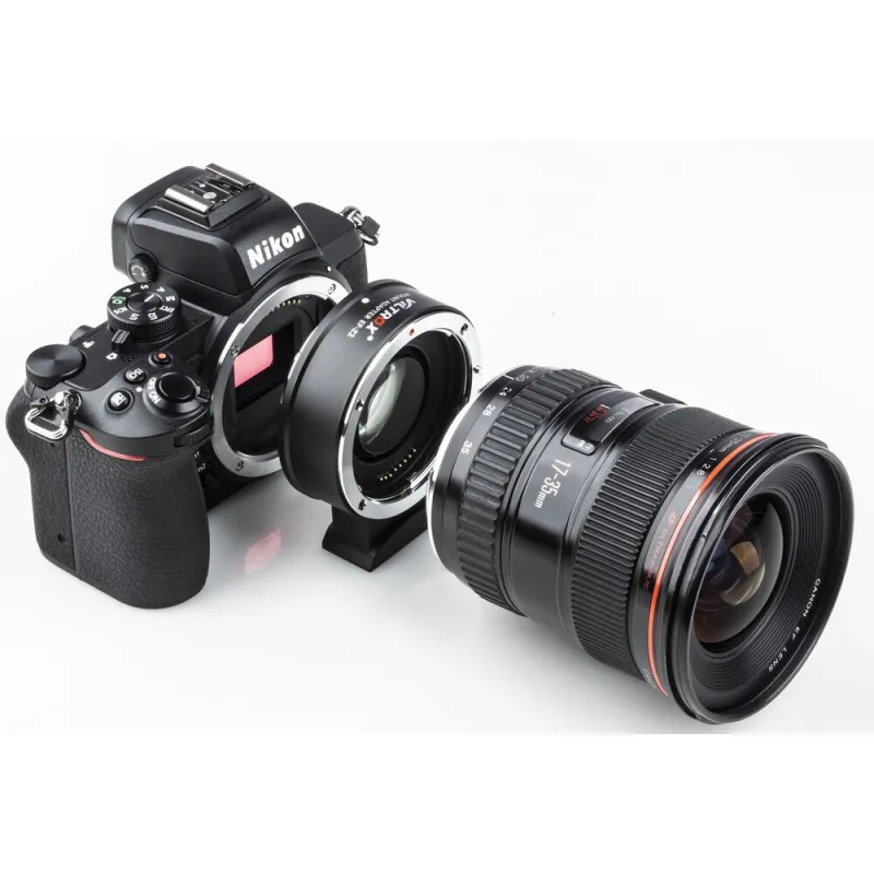 Viltrox EF-Z2 speed booster allows your Nikon Z6,Z7 or Z 50 to have more lens options among EF-mount series, keeping the lens native AF, stabilization performance as well as supports Nikon's Face and Eye Detection AF. It also features 0.71x equivalent focal length based on the original focal length and increase your camera's aperture by 1 stop.