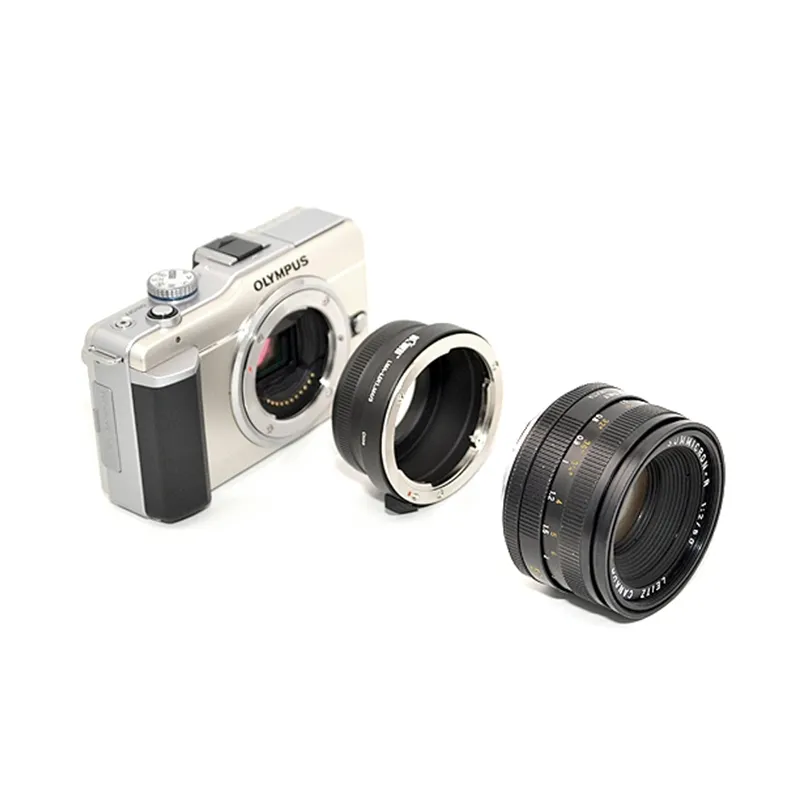 This kiwi photo lens mount adapter offers the possibility of leica r Objectives to be used on micro four third cameras. The adapter is made of refined bronze and finished with Chrome. Although the objective can be physically confirmed on the body, the functions such as automatic aperture, auto-focus and/or other functions will not work. You can then take photos in the manual stand.