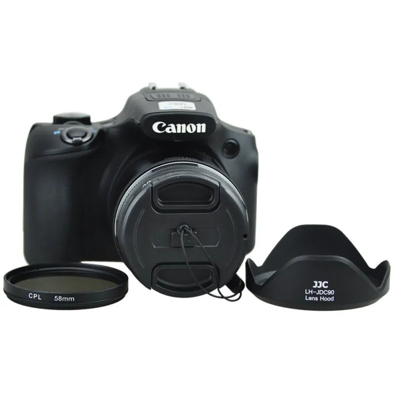 The kiwi filter tube kit for canon sx60 hs consists of a lens adapter made of black anodized Aluminum, a UV and CPL filter, sun canopy, lens cap and a cap keeper. With the help of this lens adapter kit you can attach a 58mm filter to your camera, such as a UV or CPL filter. The adapter can also be used to attach other accessories. When the wide -angle position is used, vignette can occur.