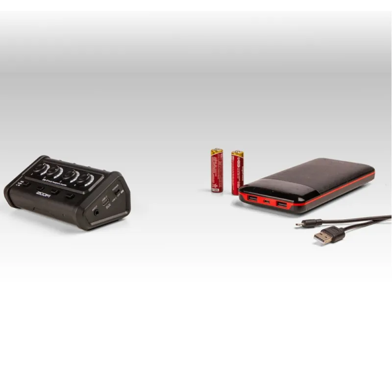 Two AA batteries provide hours of portable power. For longer sessions, connect the USB-C port to a portable battery or plug directly into the wall.