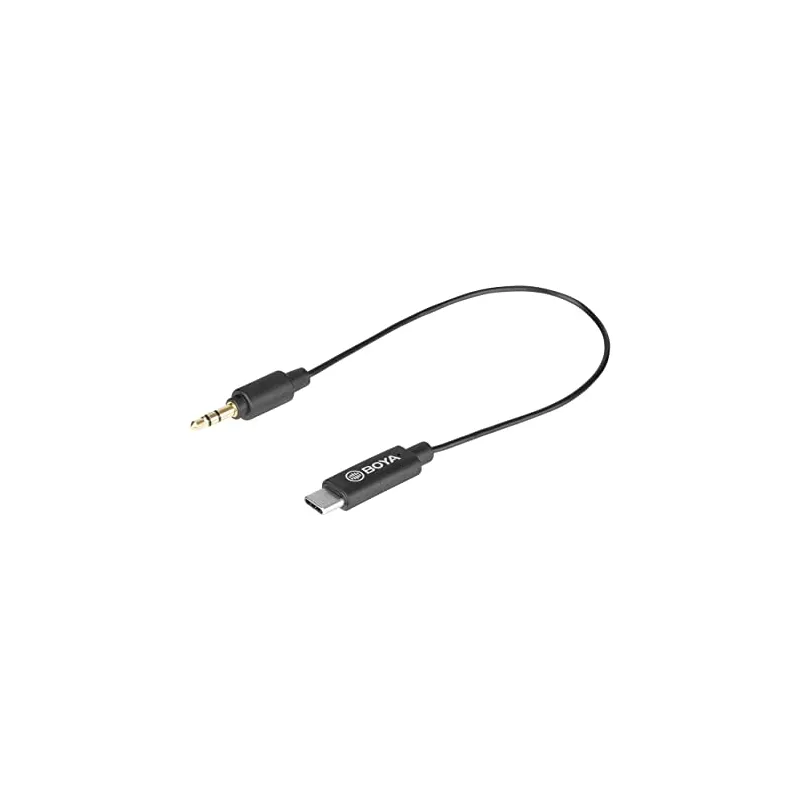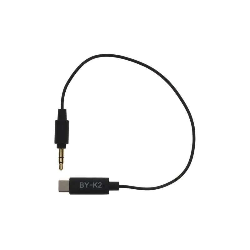The Boya Universal Adapter BY-K2 3.5mm TRS to USB-C is an adapter cable to connect your microphone to a modern Android smartphone or modern PC/mac. On one side there is a 3.5mm male jackplug (TRS) and on the other side the cable has a male USB-C connection.