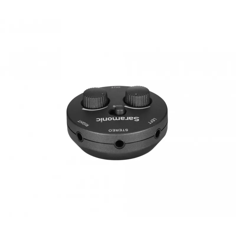 The Saramonic AX1 is a two-channel audio adapter designed for cameras, camcorders, and smartphones using the appropriate threaded adapter. This device allows you to connect two wireless microphones or receivers and control the input signal strength.