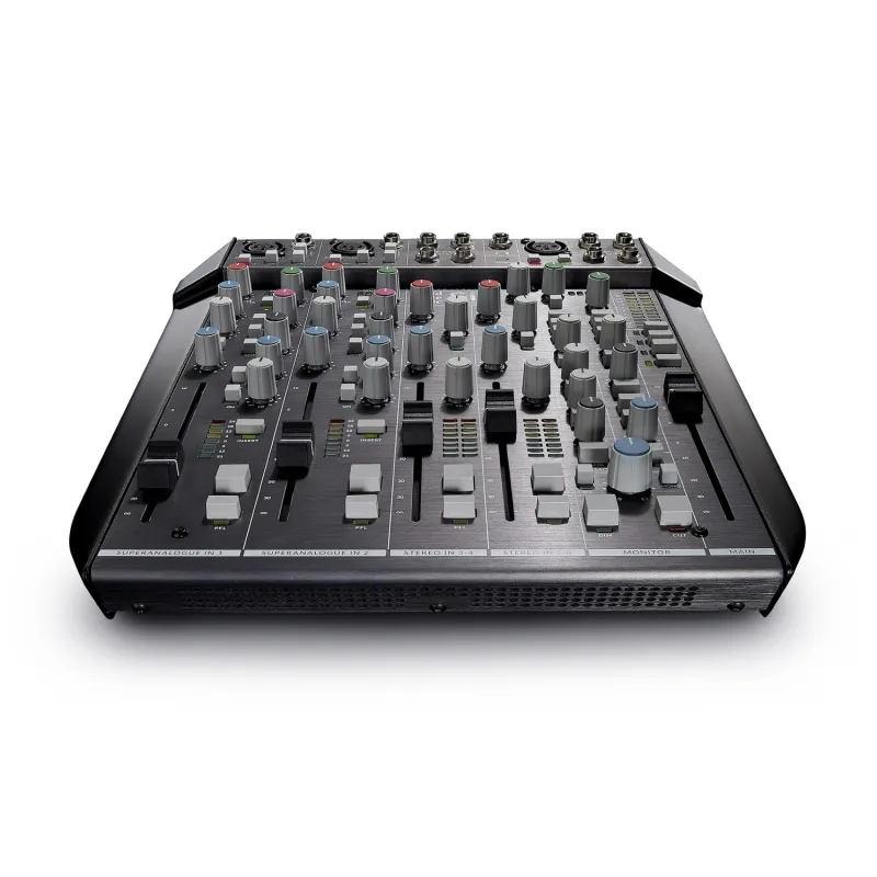 SiX is a condensed professional console for use in the studio, in post-production, on stage, and for podcasting. SiX offers big console sound and an impressive set of utility features in a format that is small enough to stick in a bag a go wherever you need it. SiX is stunning value; it offers two recording channels with SuperAnalogueTM mic pres, two band EQ, an essential one knob version of the classic SSL Channel Compressor, a new two-band Channel EQ, inserts and 100mm faders.