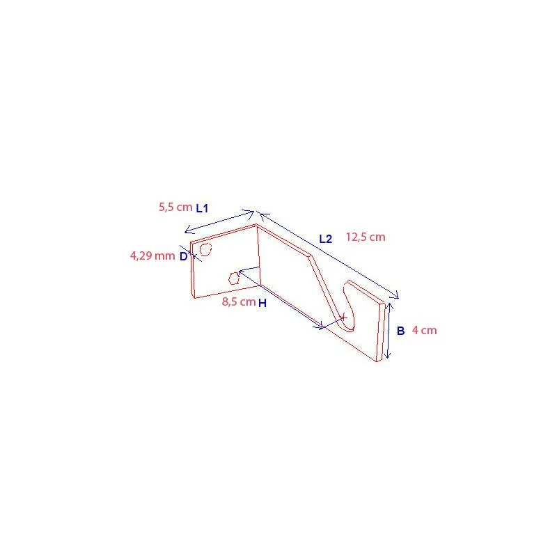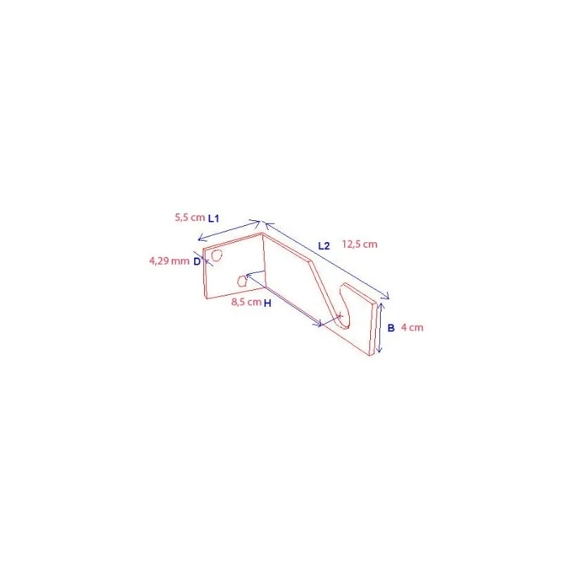 The long side of the bracket has a length of 12,5cm. The short side of the bracket has a length of 5,5cm.