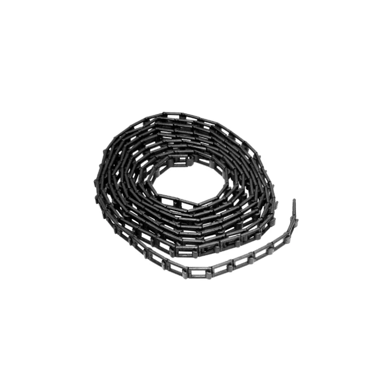 One adapter has a plastic cog that accepts a plastic drive chain, allowing you to comfortably adjust the length of your background. It also includes a tension control feature to prevent the background from unrolling by itself due to gravity. The chain is equipped with a hanging chain weight to keep it taut.
