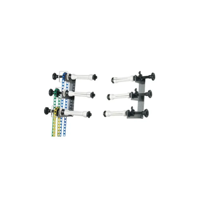 The Linkstar Background Support ES-3 is a universal hanging system used to hang up to 3 backgrounds. The system can easily be fixed to the wall or ceiling. Further, through the use of 4 x SA-PC (which can be found in the ‘optional accessories’ tab below), the ES-3 can be mounted to a light stand. Two roll holders are supplied. On the roll holder without chain you will find a rotary knob that allows you to adjust how light or heavy the paper rolls off. The last picture shows the dial.