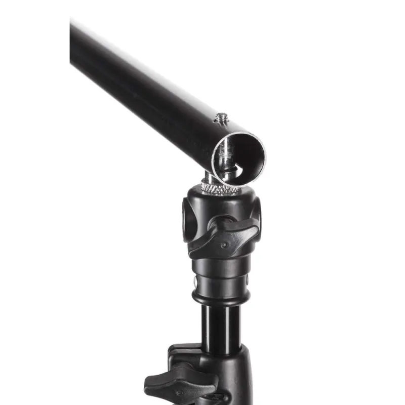 Quadralite L-2800G is a simple and effective system for portable background mounting. It allows comfortable use of backgrounds up to 280cm wide outside the studio, wherever they may be needed. The folded handle is only 87 cm long, which allows for easy transport. It can be mounted on two tripods (not included in the set) or suspended from the ceiling, for example.
