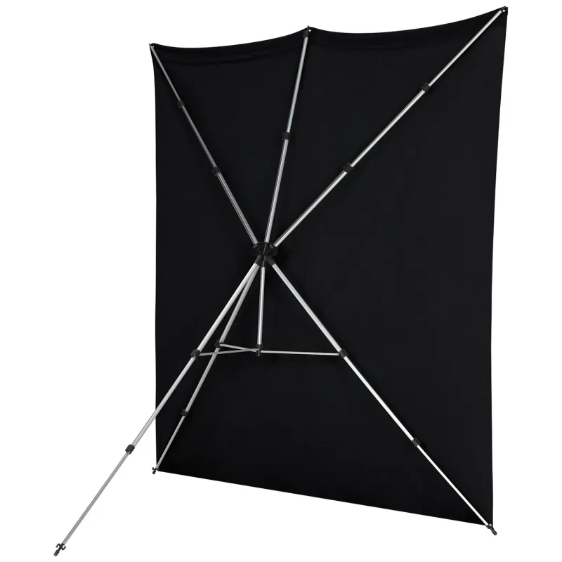 This X-Drop Pro portable backdrop kit offers flexibility on every level. The patent-pending stand features a heavy-duty frame that's convertible to support 8' X-Drop Pro and 5' X-Drop backgrounds. It can be assembled by one person in minutes, is adjustable for tight spaces, and collapses to fit in the trunk of your car. Perfect for traveling photographers, studios, video, photo booths, interviews, school photographers, and more.