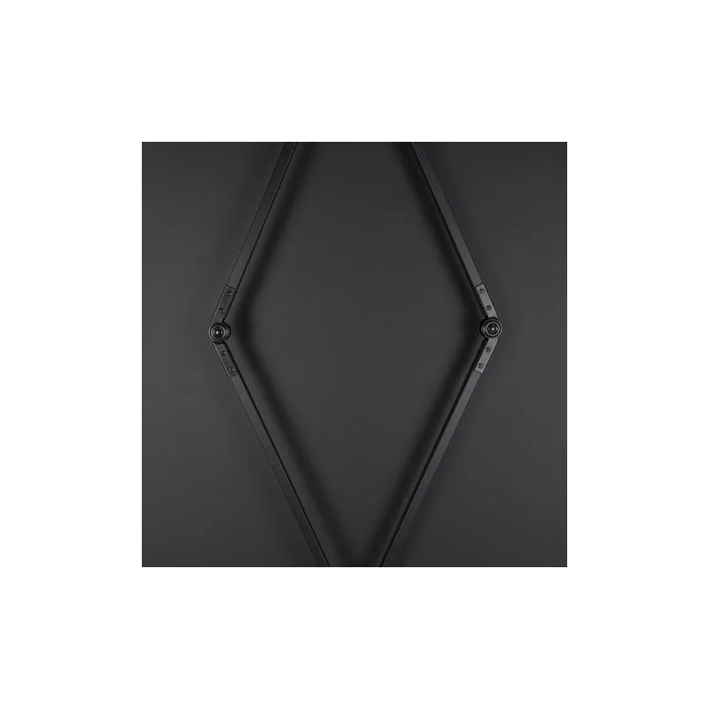 The black screen is made of 100% polyester and is gloss and wrinkle free. Because of this you will always have an even background. The bottom is made of solid aluminum. This ensures not only that the screen can stand securely, but also that you can safely take it with you. On the back there is an adjustable, spring-loaded X-bracket that allows you to adjust the cloth itself to the desired height.