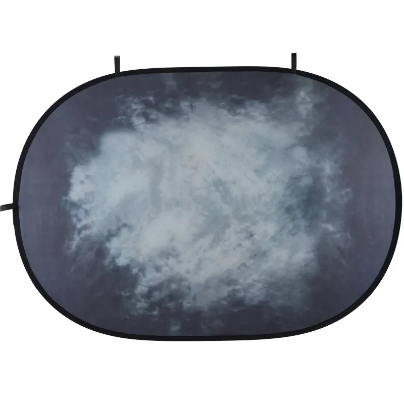 Both sides of the background have a different colour, which makes it versatile . Thanks to its dimensions of 150 x 200 cm , the background is large enough for at least one person. The folding background can be attached to a crossbar of a background support in both portrait and landscape format using the three loops. The colourful background is of high quality and is made of 140g/m2 flannel . The background is equipped with a sturdy, foldable aluminium frame .