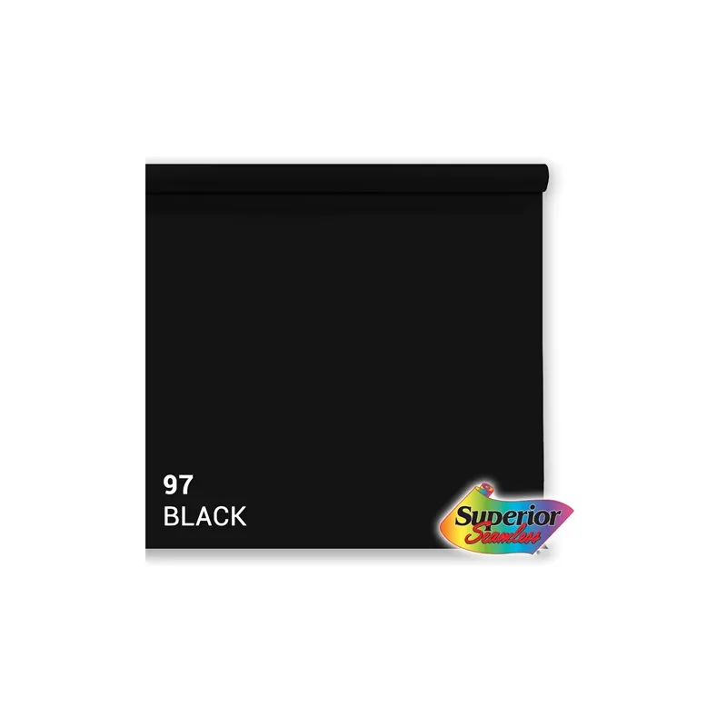 This roll of Superior Specialties backdrop paper is a 3.56 x 15m roll in the color 97. Black. With this roll of professional quality paper you can create a smooth, even background.