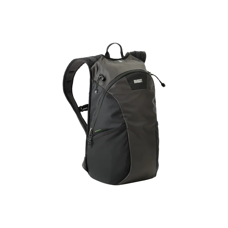 The charcoal SidePath Backpack from MindShift Gear is a versatile bag that offers two, user-selectable configurations. The 14.0L main compartment features an adjustable partition system that creates a camera compartment towards its bottom which can fit up to a medium-sized DSLR along with one or two lenses, or a medium-sized DSLR with one lens and a flash. Users of mirrorless camera systems can fit up to three lenses along with a camera, plus a flash and back-up camera. The 8.0L space created above the camera, lenses, or flash can accommodate books, documents, a lunch bag, or a light jacket. Toward the rear of the main compartment is a pocket that holds a 10.0" tablet computer or a 1.5L water reservoir, above which is an exit port for an attached drinking tube. Opposite the tablet, computer, or water reservoir pocket is a zippered, mesh organizational pocket for items that need to be accessed quickly and conveniently in the main compartment.
