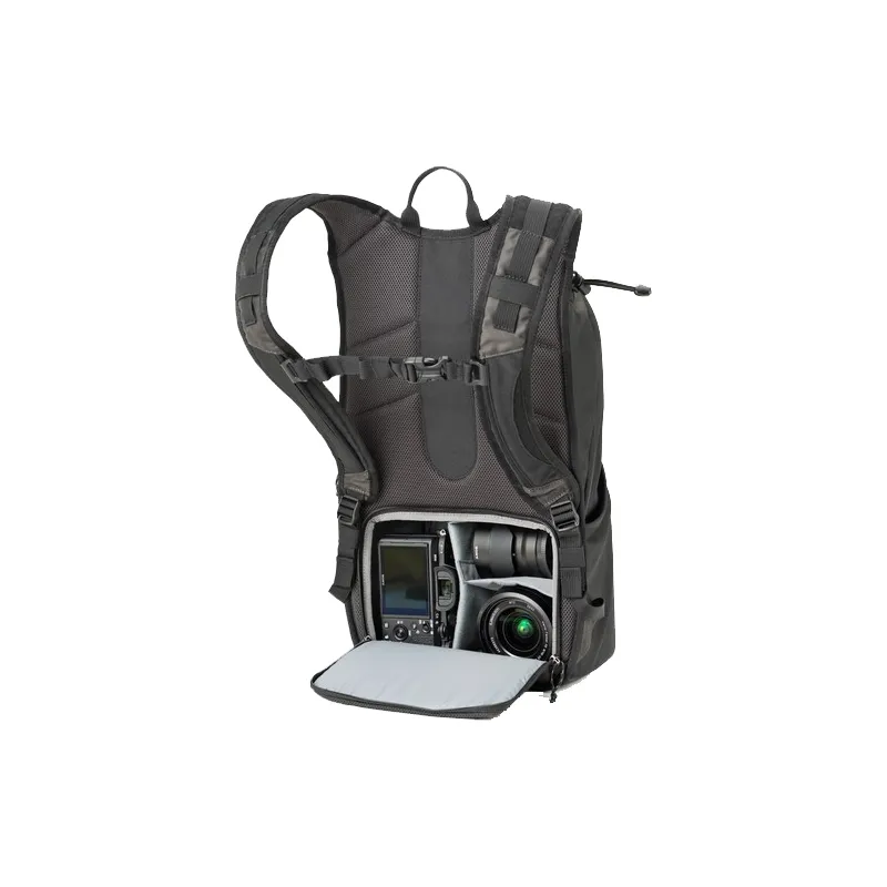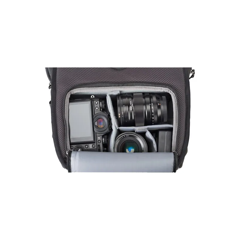 While it is in use, three adjustable and removable dividers allow the camera compartment's space to be configured according to the specific equipment being carried within it. Access to the camera compartment is provided by a zippered panel that faces the wearer's back, helping to minimize the potential for theft. When the SidePath Backpack is not being used to hold a camera system and a more traditional daypack is needed, the partition creating the camera compartment can be moved for uninterrupted access to this bag's 14.0L volume.