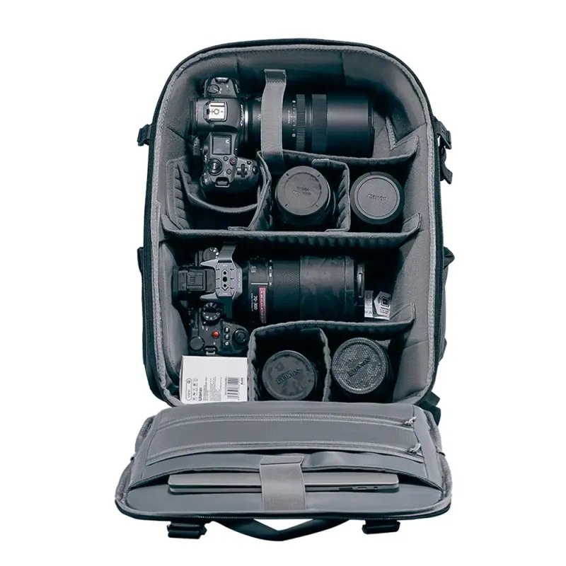 The large capacity backpack The Ulanzi BP09 Camera Backpack 22L is ideal for travelling and your daily commute. Pack your camera gear and clothes in the same bag and use the removable folding dividers to organise your belongings. High capacity photography backpack with padded insert, 16 laptop compartment, professional waterproof camera bag for Canon/Nikon/Sony/DJI Mavic Drone.