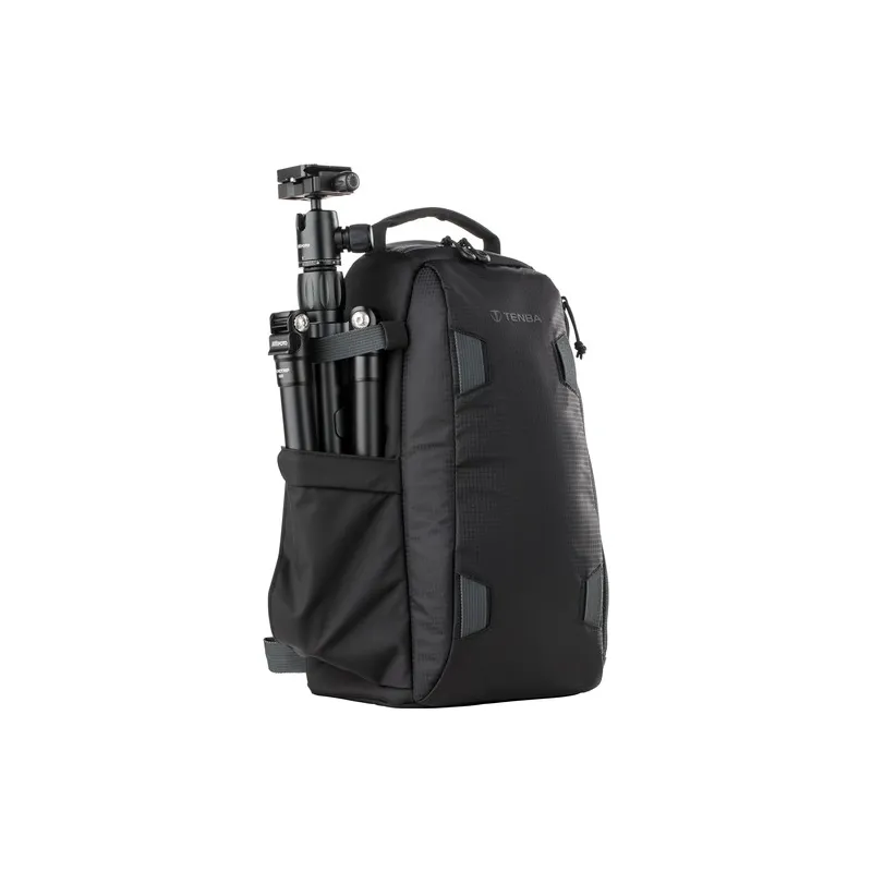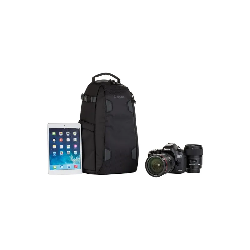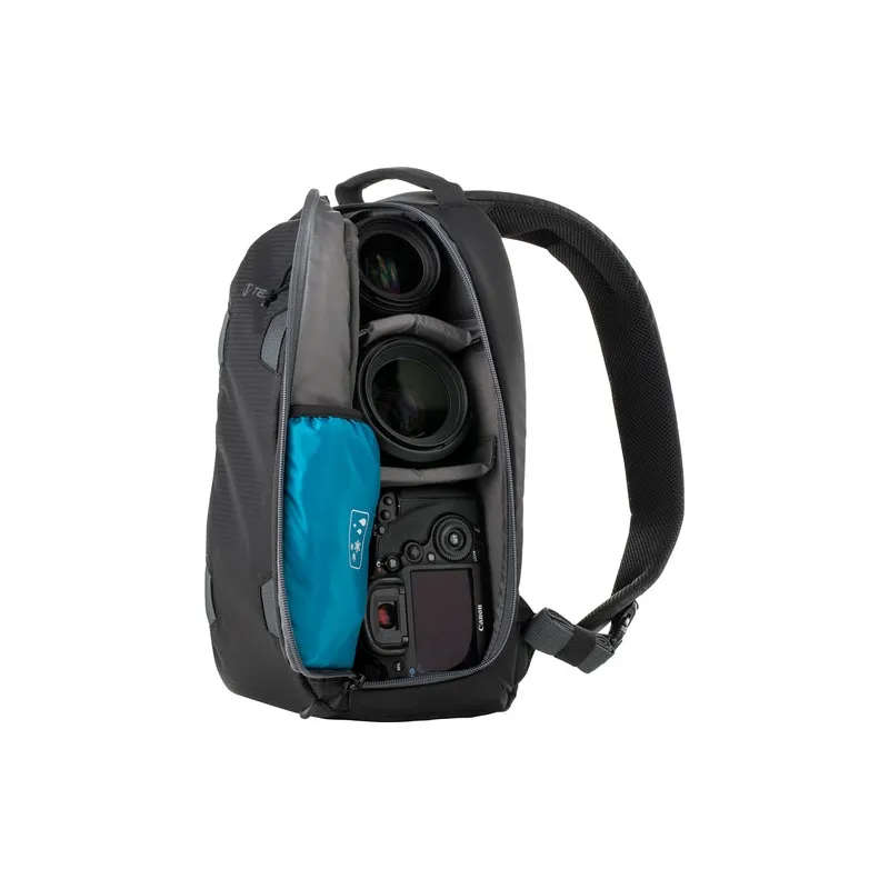 Tenba Solstice sling bags combine the all-day carrying comfort and support of a backpack with the quick camera access of a shoulder bag. The 7 liter sling bag will fit a mirrorless or DSLR camera with 2-3 lenses (up to attached 70-200mm 2.8), plus an iPad Mini or similar 8-inch tablet. It also fits the DJI Mavic and other compact drones. The side pocket will fit a large water bottle or compact tripod, and the bag includes a removable WeatherWrap rain cover for extra protection on wet weather days. The dynamic interior can easily be adjusted to split between different ratios of camera gear and personal/travel items.