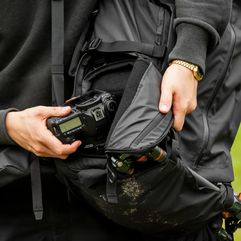 The FERNWEH has four main access points, which means that your belongings are always just one zipper away. It has a top access, front access with catch-all pocket and space for your hydration sleeve, back access for all your camera gear and a quick-draw access via the side for your camera or new batteries.