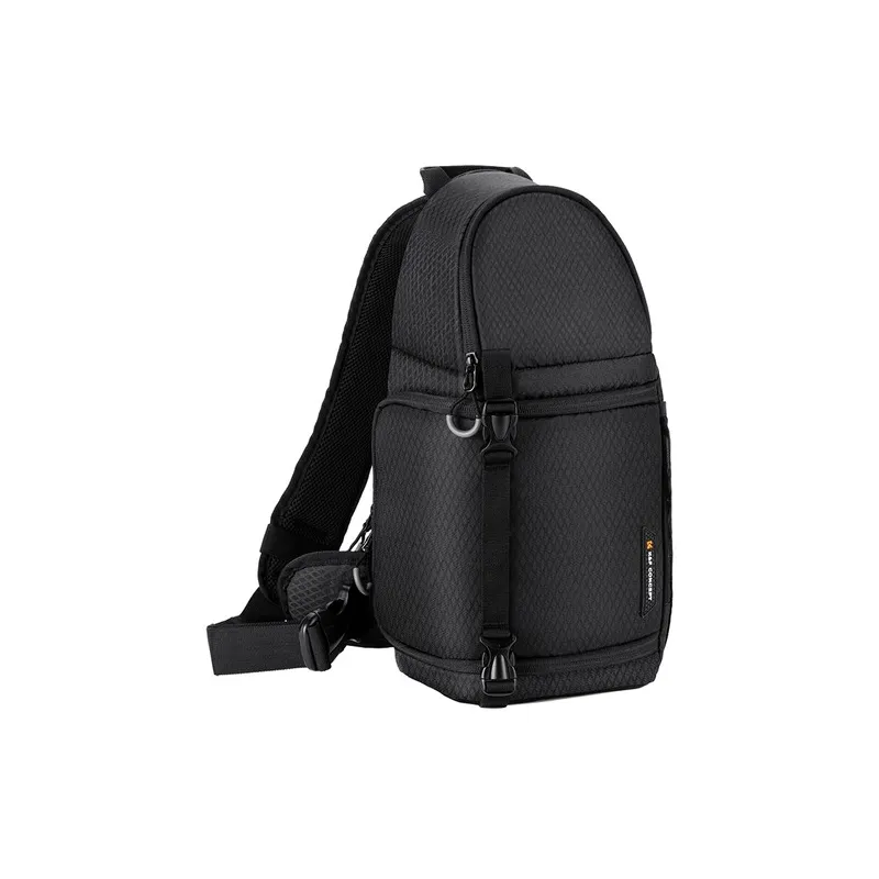 The black Beta Series Camera Sling Bag from K&F Concept holds a camera body and two lenses, as well as extra gear and accessories. The interior has adjustable dividers to accommodate your gear. You can quickly access your gear through the rear and side. The waterproof exterior helps keep your gear dry and safe in wet or inclement conditions. A thick, wide cross-body strap makes carrying this pack easy and comfortable.